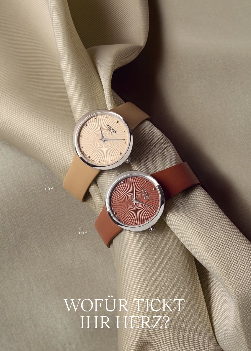 In der aktuellen Kollektion trifft Boccia wieder einmal den aktuellen Zeitgeist und hat die neuen Schmuckstücke und Armbanduhren äußerst hochwertig und trotzdem zu einem sehr angenehmen Preis gestaltet. Sehr gerne halten wir, als Premium Partner eine sehr große Auswahl von Boccia bei uns im Laden für Sie bereit und packen natürlich die ausgewählte Uhr oder den Schmuck schön weihnachtlich für Sie ein.